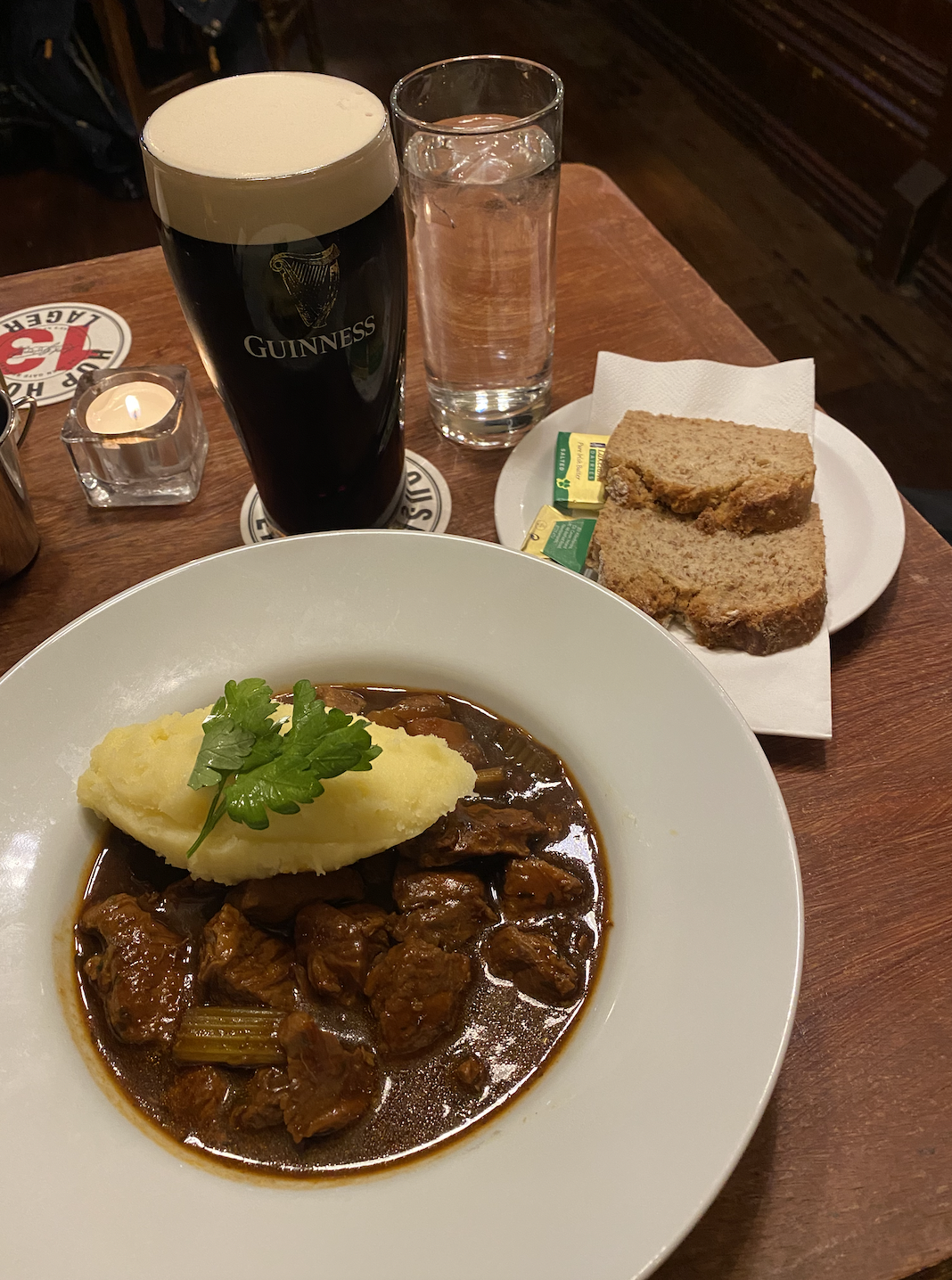 Dinner time in Dublin means it’s time to check out another pub, and where better to go than the oldest pub in Ireland?! I waited for just a few minutes to get into The Brazen Head, and upon entry, I enjoyed some beef stew, soda bread, and yes, another pint of Guinness. I was trying to fully experience the culture, after all!