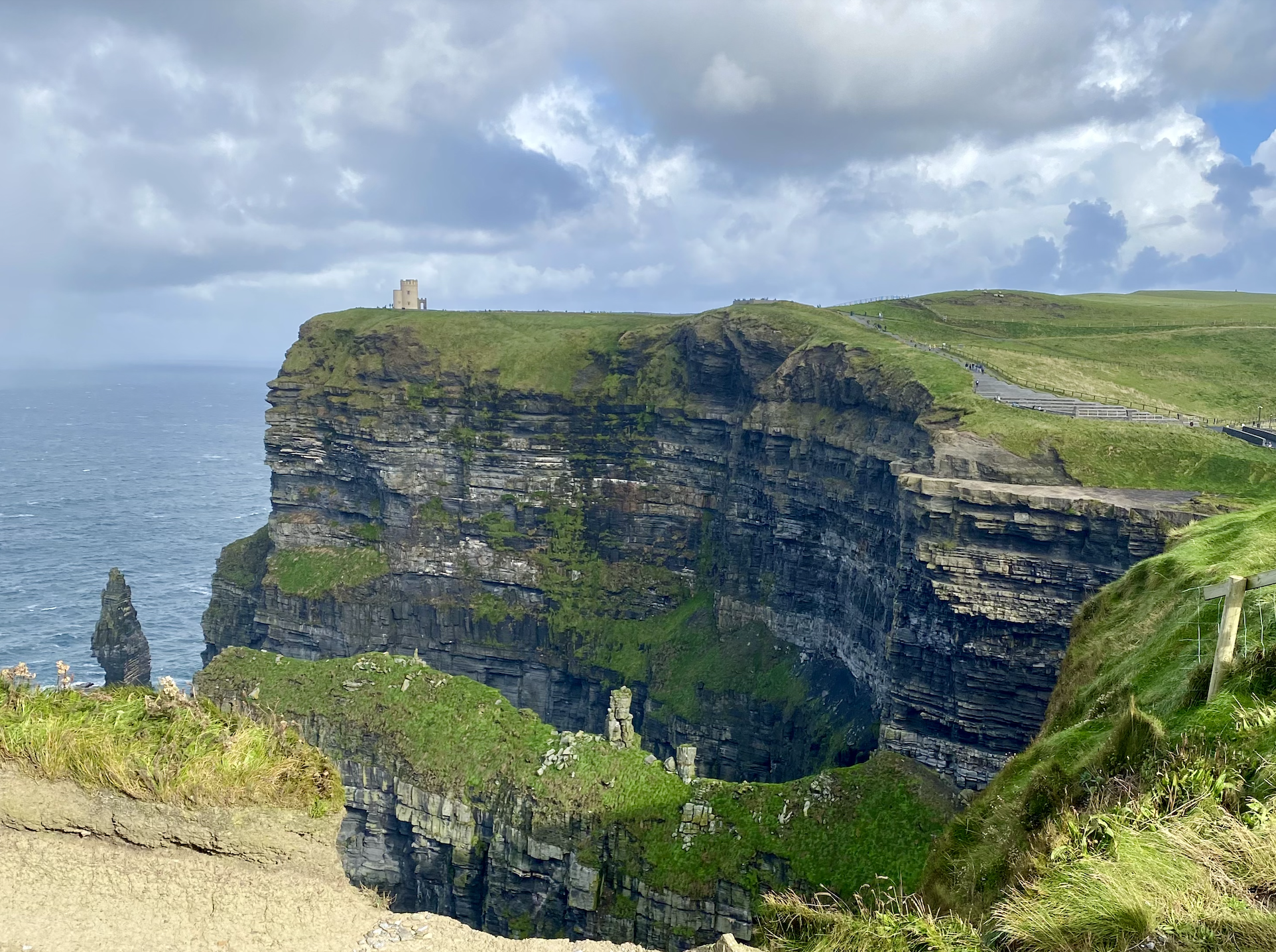 A couple of hours later, we made it to the Cliffs of Moher. We were advised to walk around for as long as possible to “breathe in the fresh Atlantic air,” but we quickly learned this is close to impossible here. I felt winds like never before, to the point where I was literally stuck in one place and all I could do was laugh at the situation. This being said, the view was quite spectacular and it’s a great place to go for a walk and meditate a bit (when the winds are a bit calmer, at least).