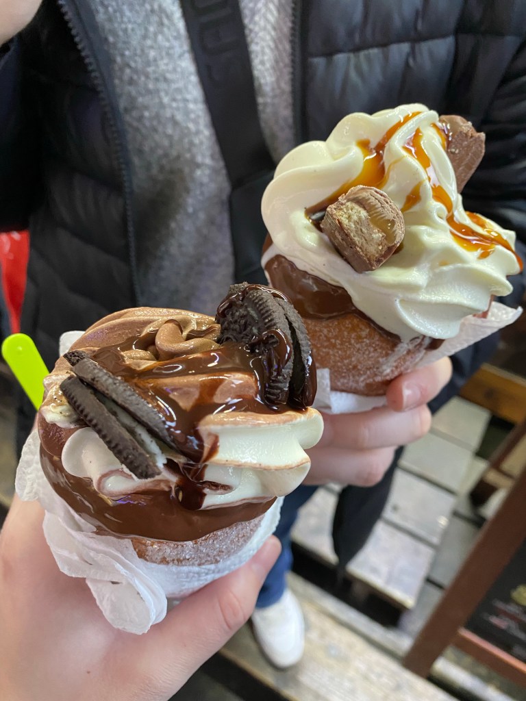 It’s true that swimming makes you hungry (or should I say Hungary), and I was absolutely ravenous. We grabbed chimney cones, essentially a sugary bread cone filled with ice cream, nutella, and toppings on the way home. Yum!